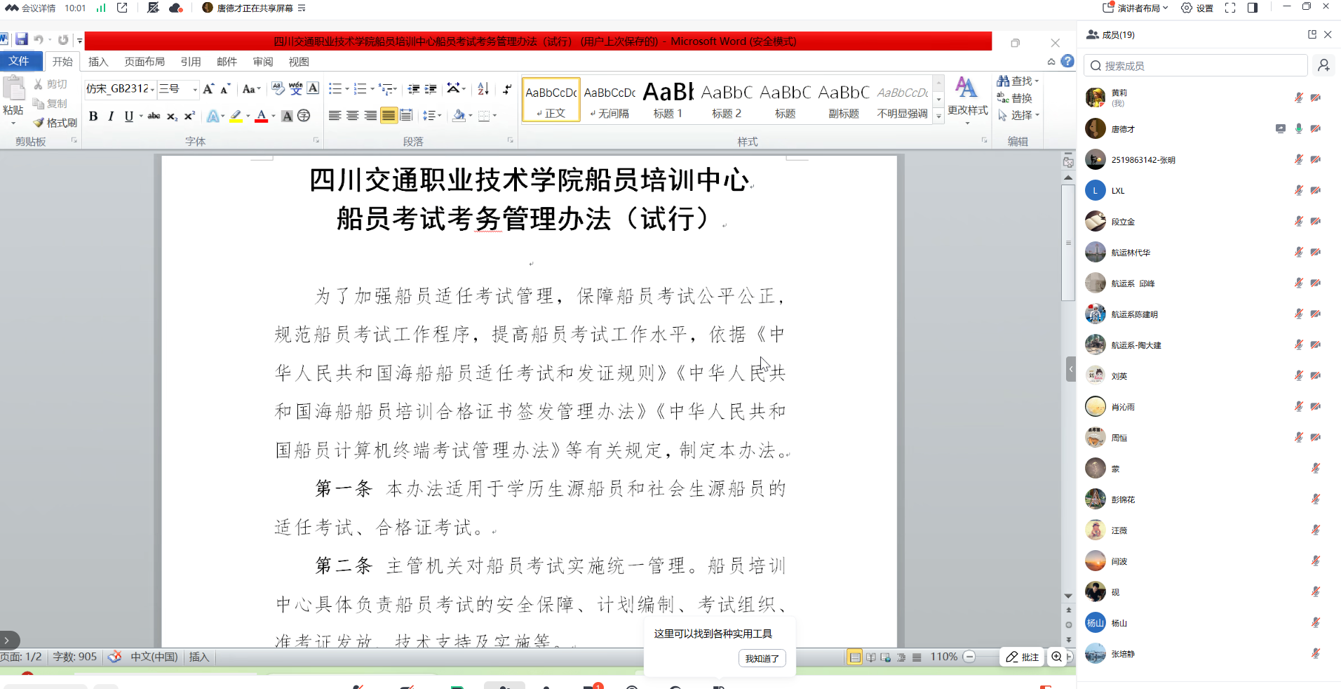 为规范船员培训考试流程、保障三副三管、水机、合格证等考试工作有序开展,4月7日19:00-21:00,航运工程系通过腾讯会议召开船员培训考试考务工作专题会议。会议由唐德才主持,全体考务工作人员参会。